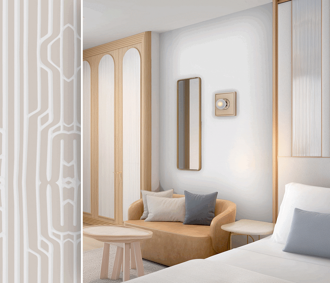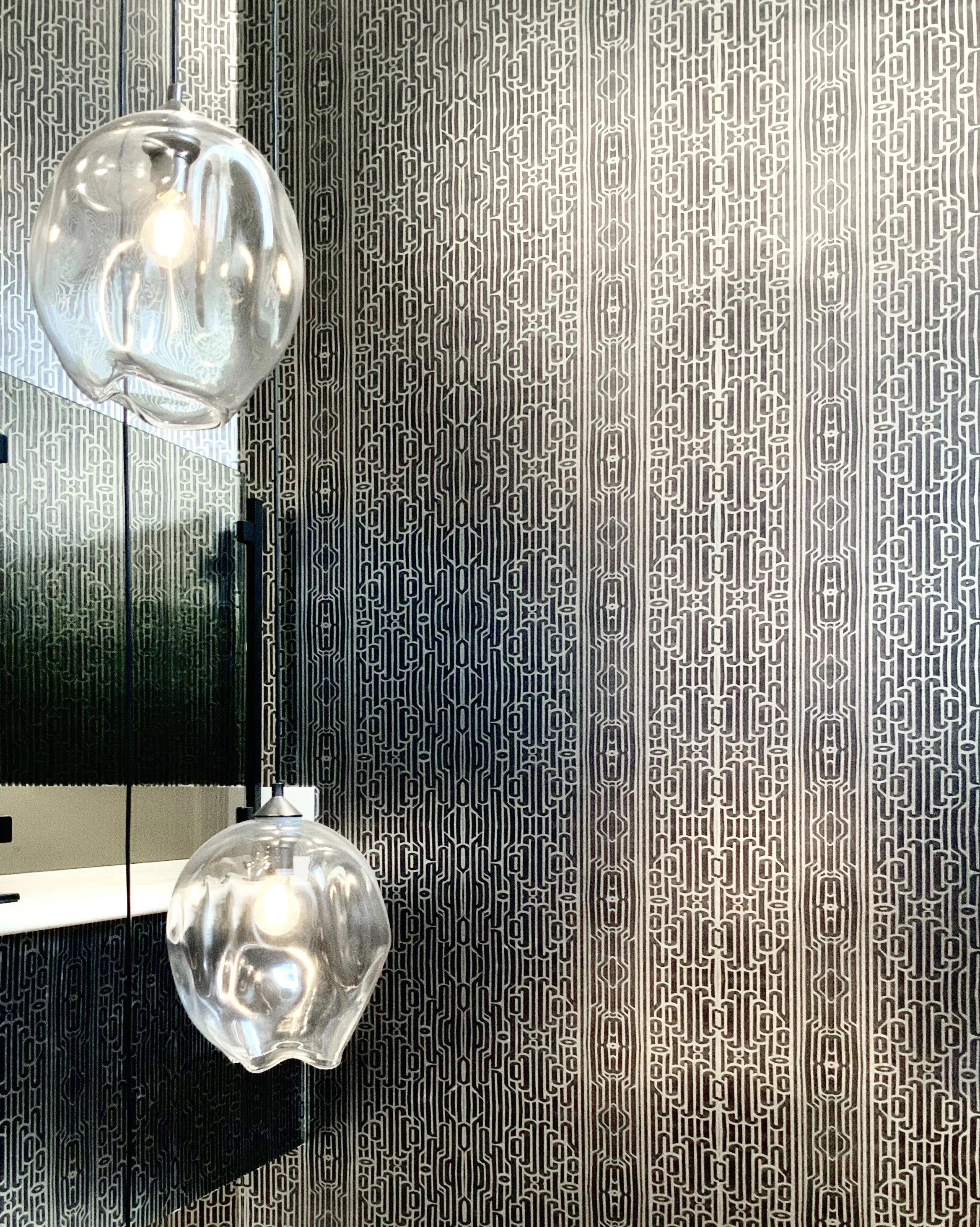 Shown here in Emerald on gold textured type II wallcovering. Available in LEED certified sustainable eco friendly recycled papers with ease of custom color tinting where bespoke hues are required.