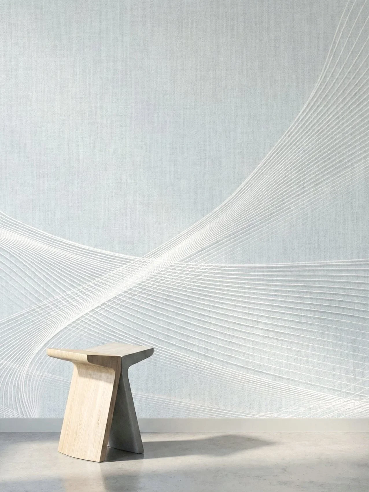 An ethereal, non-repeating wall mural inspired by suspended motion of light and sound.
