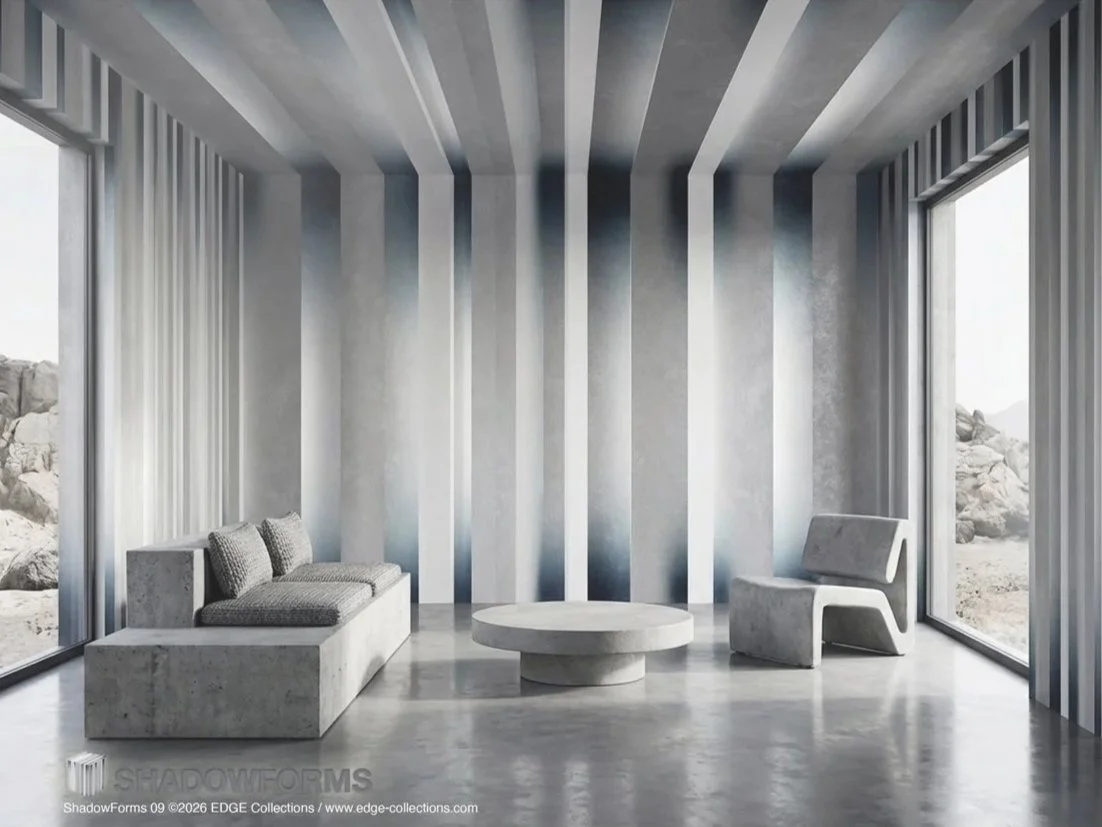 EDGE Collections PRESENTS ShadowForms, a nine-piece wallcovering series where brutalist minimalism meets sculptural illusion.