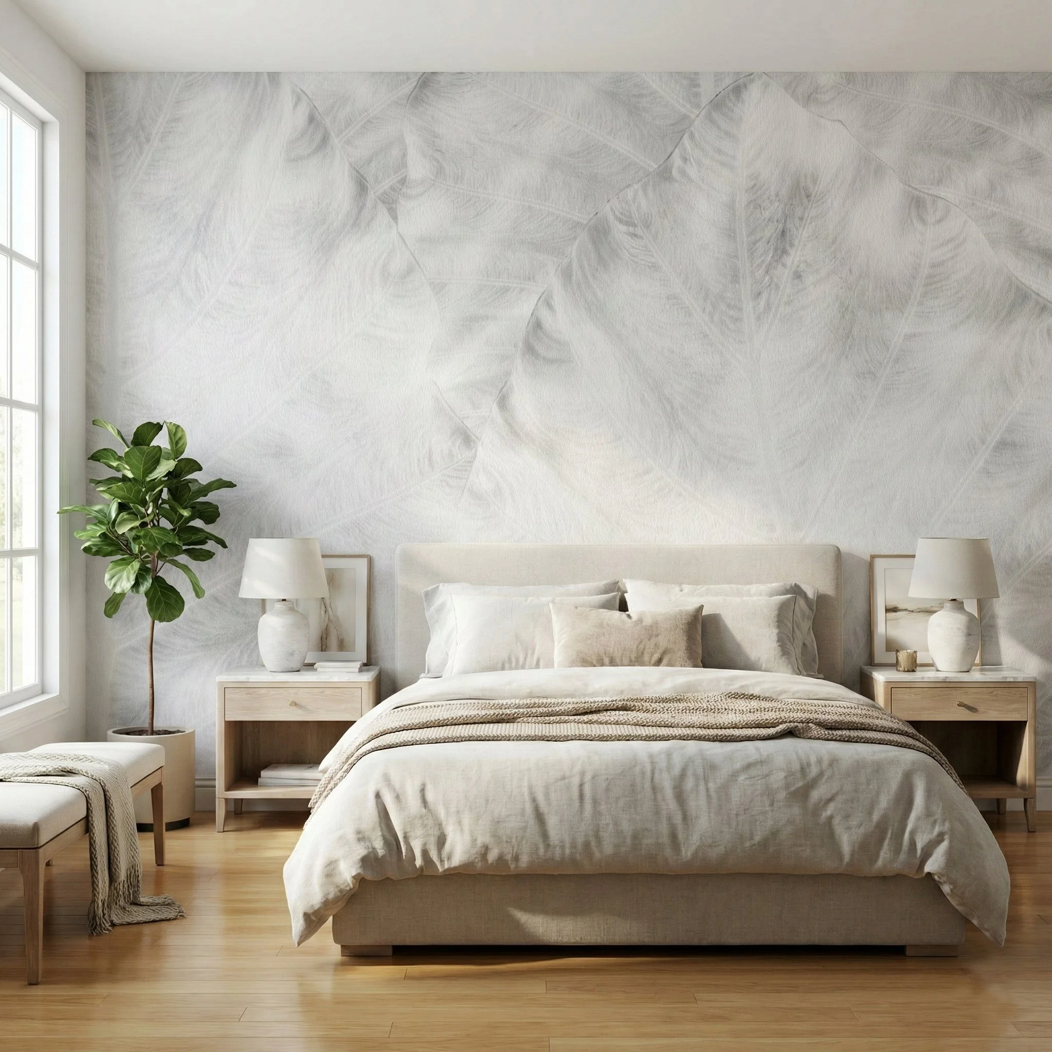 ShadowFrond {Bianco} on Linen textred type II